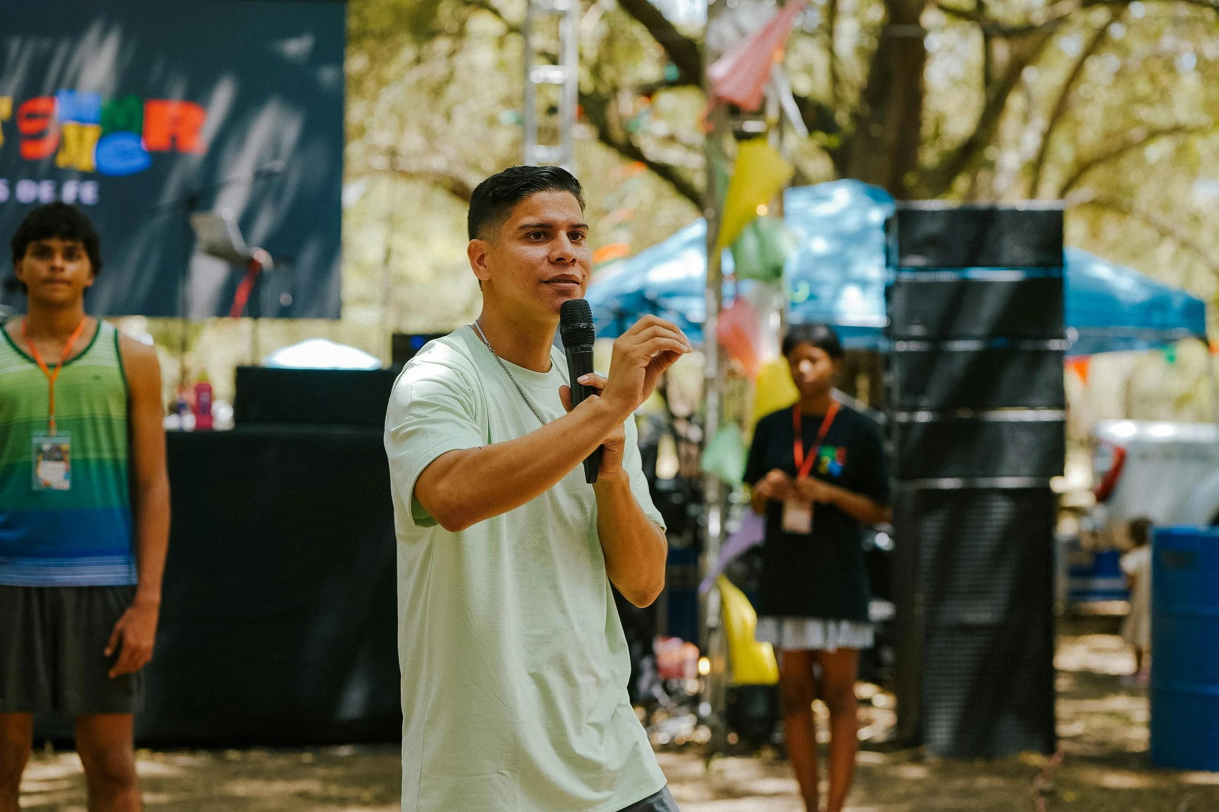 To effectively communicate with people in multiple languages, offering guidance and support toward a brighter future, we need portable speaker systems, cordless microphones & mic stands, and audio cables & accessories.